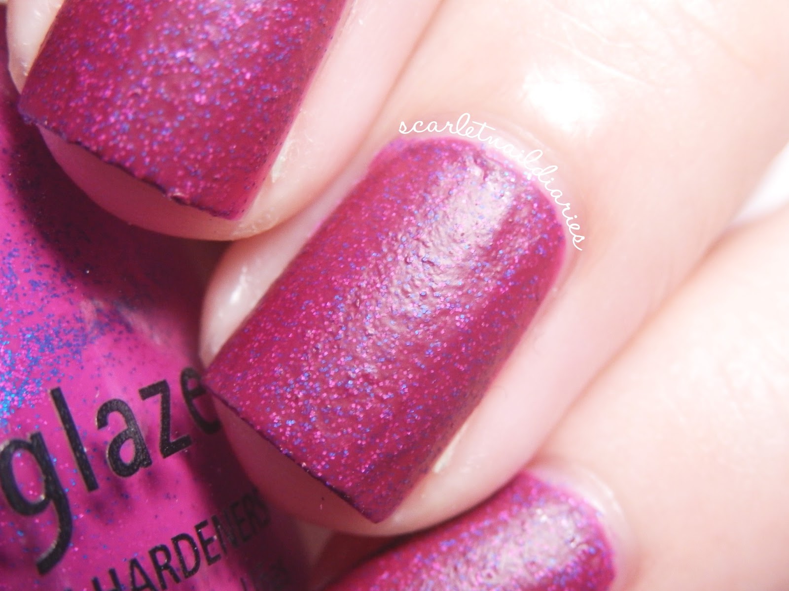 So my swatch here is at 3 coats, and it shows the grittiness of the polish. I refrained from giving it a top coat shine because I think it looks so mega pretty like this. Flying Dragon is a neon purple polish with bright blue splashes of color. I love how it dries, not only is it a magnificent matte, it dries with texture! It's like the original textured polish that seems to be really popular lately. The formula was a little streaky, I suppose my bottle could've been in storage for so long that it could benefit from a little thinner.